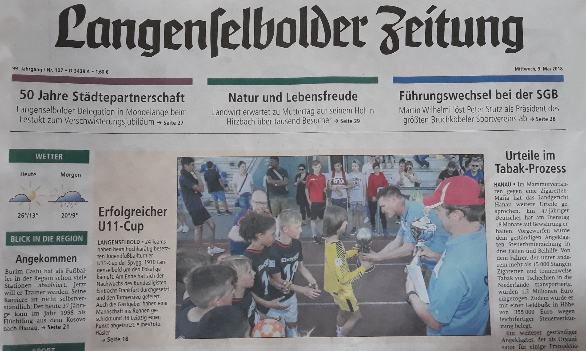 | 04.02.18 | B1 gewinnt Futsal Kreismeisterschaft Nach Hin- und Rückrunde, es spielten 12 Mannschaften in 2 Gruppen , qualifizierten sich die jeweils drei Gruppenbesten zum Finale der diesjährigen Futsal Kreishallenmeisterschaft der B-Junioren der Jahrgänge 2002/2001. Austragungsort war am 04.02.2018 die Sporthalle in Erlensee.